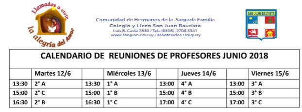 Calendario de reuniones de profesores - junio - ATENCIÓN HUBO CAMBIOS