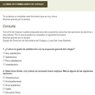 Con el fin de mejorar nuestra propuesta educativa queremos escuchar las opiniones de alumnos y educadores. Por lo que te pedimos completes el siguiente formulario. Muchas gracias por tu tiempo.