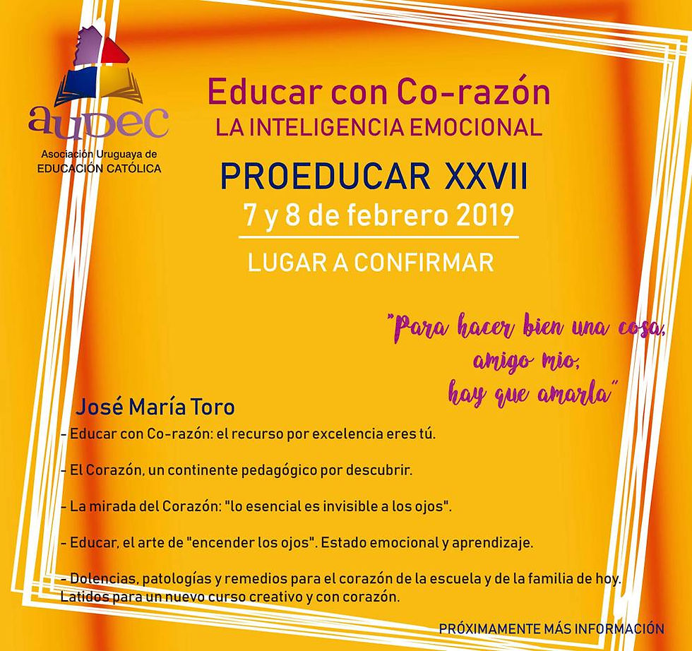 INSCRIPCIONES: Para completar el formulario de inscripción es necesario incluir obligatoriamente el No de depósito de la matrícula. Es decir que deben realizar el pago con anterioridad, en la Caja de Ahorros No1564125-00002 a nombre de la Asociación Uruguaya de Educación Católica, en el Banco República y posteriormente cada participante podrá continuar su inscripción, completando el formulario web que se encuentra en nuestra página: www.audec.edu.uy. Recuerden que es necesario que nos envíen escaneado a secretaria@audec.edu.uy el comprobante del BROU, aclarando: 1) Nombre del inscripto, 2) Centro educativo, 3) Ciudad y 4) Concepto: ProEducar XXVII.